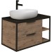Ширина: 90 см, Материал фасада: МДФ,Металл, Цвет фасада: Дуб веллингтон/Черный, Стилистика дизайна: Современный стиль