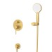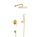 Душевой комплект встраиваемыйУправление: рычажное Материал: нержавеющая сталь Исполнение: брашированное золото Механизм: керамический картридж Оснащение: встраиваемый смеситель с переключателем на два выхода, верхний душ с кронштейном, ручной душ 3-х режимный со шлангом, штуцером и держателем Рабочий интервал давления в водопроводной сети: 0,5-6,0 АтмГарантия: 5 лет с даты продажи (за исключением резиновых уплотнителей, шлангов, переключателей) - на остальные комплектующие изделий CEZARES, за исключением резиновых изделий - 3 года с даты продажи - на резиновые изделия - 1 год с даты продажиГарантия на аксессуары к смесителю (гибкий шланг, душевая лейка, держатель для лейки, верхний душ) составляет 1 годВНИМАНИЕ: скрытая монтажная часть входит в комплект