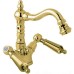 Двухвентильный смеситель с поворотным изливом и аэратором, монтируемый в одно отверстие. Имеет долгий срок эксплуатации за счет качественных деталей, неприхотлив в уходе. Станет прекрасным дополнением ванной комнаты в классическом или ретро стиле.