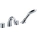 состоит из: смесителя на край ванны на 4 отверстия, ручного душа, душевого шланга, держателя для душа