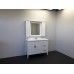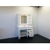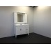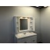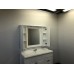 Зеркальное высококачественное полотно с амальгамой на основе серебра. Фасады мебельных элементов окрашены белой глянцевой эмалью и оснащены механизмами плавного закрывания. За створками по две полки. Верхний фриз оборудован двумя галогеновыми светильниками и выключателем.