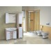 Слева от зеркала за распашной дверцей с неброской горизонтальной фрезеровкой и механизмом плавного закрывания, расположено отделение для хранения, разделенное на три части горизонтальными полочками, Справа от зеркала и под ним - открытые полочки для косметических средств или декоративных элементов.